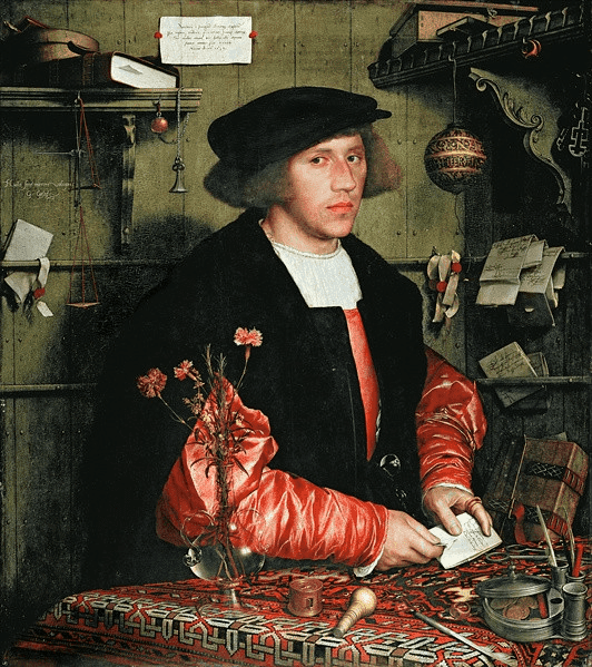 Georg Giese był kolejnym przedstawicielem branży handlowej, który wiedział, jak dobrze robić interesy. W jego rodzinie było dwóch burmistrzów Gdańska, a rodzina jego babki była związana z Ferberami. Sam George był przedstawicielem Gdańska w Londynie. Jego portret, który zamówił dla swojej narzeczonej, pokazuje, że nosił drogie ubrania i posiadał wiele dóbr.